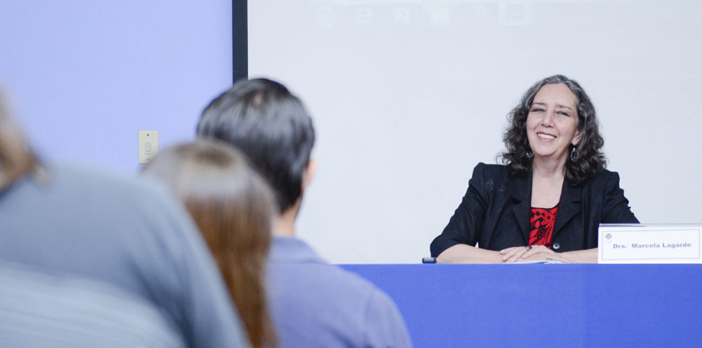 Lagarde fue invitada al ITESO para realizar talleres dirigidos a estudiantes y profesores. Además, ofreció una charla abierta al público general en el Museo de Arte Raúl Anguiano, el miércoles 29 de octubre por la tarde.